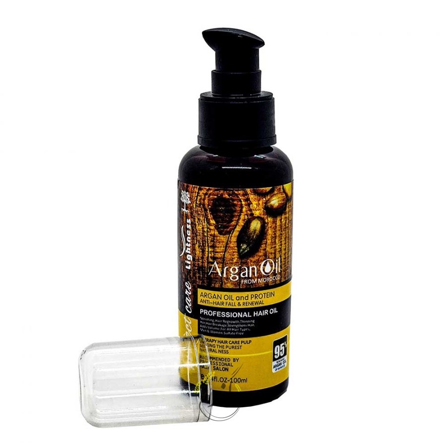 - روغن آرگان لایتنس حاوی ۹۵ درصد روغن آرگان طبیعی در ترکیبات خود است. که باعث نرمی و لطافت بافت مو شده و ساقه مو را تقویت می کند. روغن آرگان از خواص فوق العاده ای برخوردار است از جمله اینکه، باعث درخشان شدن و شادابی بافت مو می شود. وزی و خشکی را از بین برده و از ایجاد موخوره و شکنندگی نیز جلوگیری میکند. روغن آرگان حاوی مقادیر زیادی اسید چرب و ویتامین E است که باعث تقویت و سلامت ساختار مو شده و موهایی سالم و زیبا را به ارمغان می آورد. روغن آرگان لایتنس، بدون سولفات است بنابراین از موها به خوبی مراقبت و محافظت کرده و موهایی درخشان را به شما می بخشد. همچنین بخاطر نداشتن سولفات موهای کراتینه به راحتی میتوانند از آن استفاده کنند. روغن آرگان لایتنس رطوبت مو را حفظ کرده و از ریزش مو جلوگیری میکند.